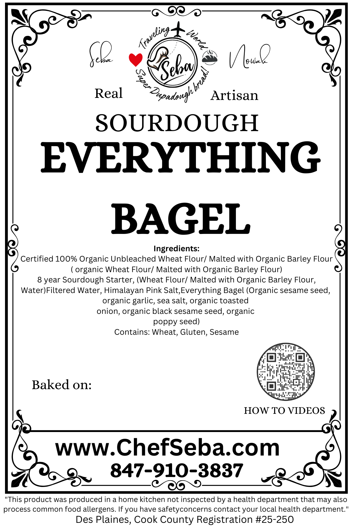 8-year-old sourdough starter, organic flour, water, and sea salt. Naturally leavened and long-fermented for rich depth of flavor, a crisp crust, and a soft, airy crumb — topped with a savory blend of sesame, poppy seeds, garlic, onion, and sea salt.